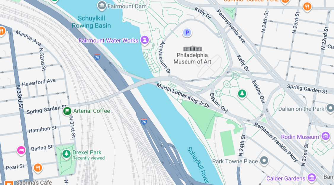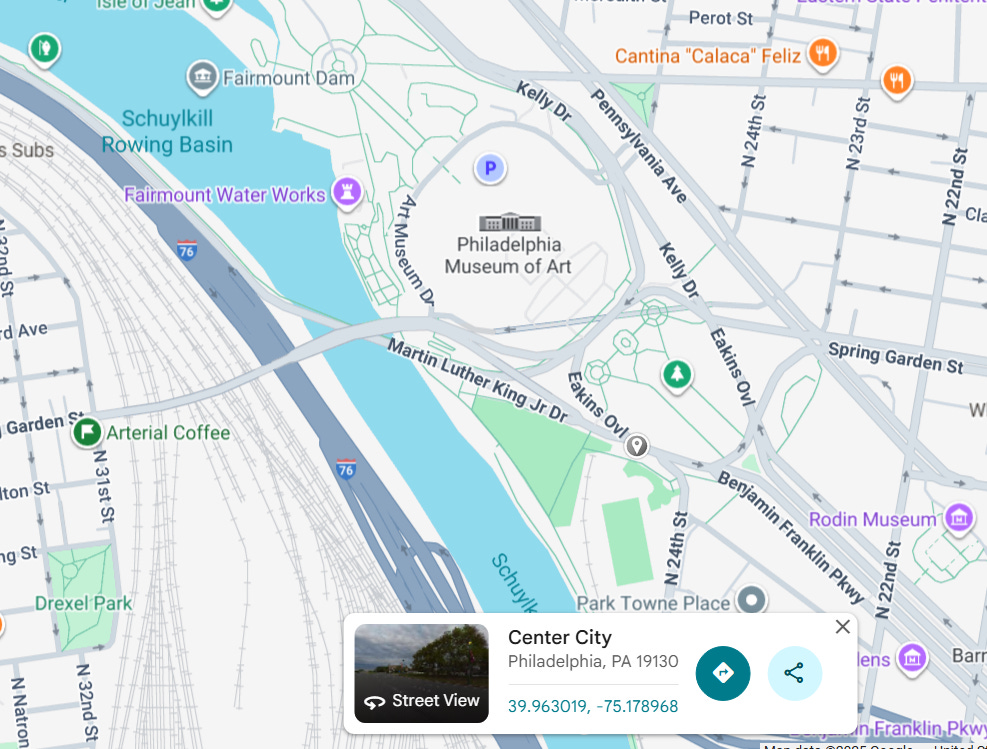 Enter security from the northwest end as pinned below (roughly where Eakins Oval and MLK Jr Drive meet). I entered around 6 AM, an hour before the race start, with no line. I’ve heard that other secured entrances get really long, especially the one from the southern end on the Benjamin Franklin Parkway.